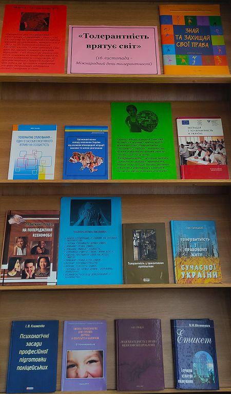 До Міжнародного Дня толерантності наукова бібліотека Харківського національного університету внутрішніх справ презентує книжково-ілюстративну експозицію «Толерантність врятує світ».