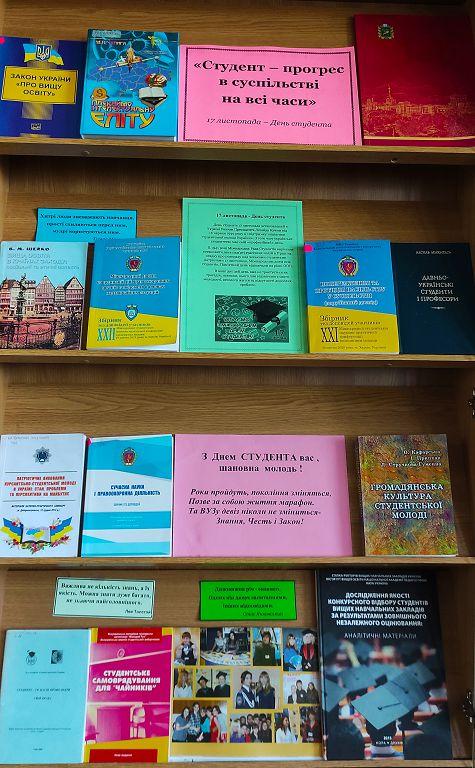 Звісно, це свято не пройшло і повз уваги наукової бібліотеки Харківського національного університету внутрішніх справ, яка підготувала розгорнуту книжково-ілюстративну експозицію «Студент – прогрес в суспільстві на всі часи» та запрошує всіх бажаючих її відвідати.
