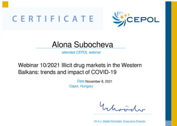 Представники Харківського національного університету внутрішніх справ проходять різноманітні курси, беруть участь у вебінарах з метою підвищити свій професійний рівень, отримати нові знання. За участь в онлайн-заходах отримують відповідні сертифікати. За останній час представники університету взяли участь у таких курсах та вебінарах: Darkweb, Firearms, Illicit drug markets in the Western Balkans: trends and impact of COVID-19, Third party reporting, Lisbon Treaty тощо.