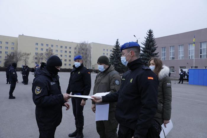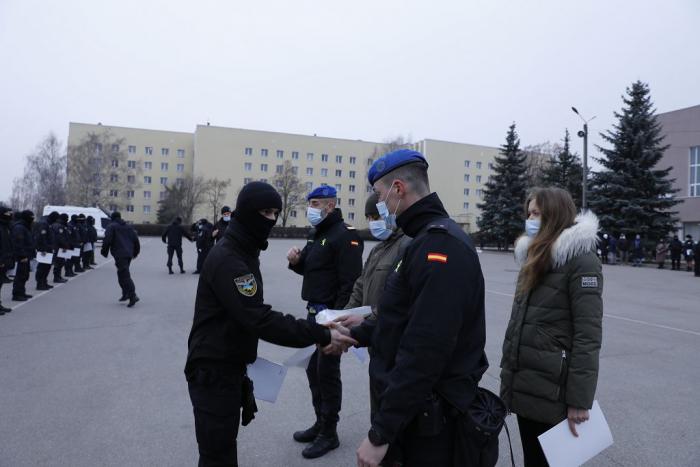 Після вручення сертифікатів до поліцейських спецпідрозділу звернувся ректор університету Валерій Сокуренко: «При проходженні навчального курсу ви отримали міжнародний досвід, напрацювали алгоритм дій, удосконалили теоретичні знання і практичні навички забезпечення публічної безпеки і порядку за скандинавською моделлю. Ми вдячні колегам Консультативної місії Європейського Союзу, іспанським тренерам, які передали свої знання, навички та свій європейський досвід, що знадобиться у вашій подальшій службі. Ми розраховуємо на вас, на ваш професіоналізм, на вашу налаштованість на результат. Бажаю вам міцного здоров’я, наснаги та нових здобутків. Служіть так, щоб вас поважали люди і оберігав Господь Бог!».