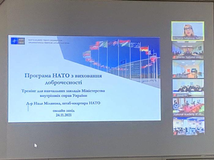 Інформаційний захід був спрямований на інформування здобувачів вищої освіти, науково-педагогічного складу ЗВО МВС щодо реалізації державної політики євроатлантичної інтеграції, підвищення обізнаності щодо діяльності та розвитку Північноатлантичного Альянсу та розуміння напрямів співробітництва Україна – НАТО у сфері розбудови доброчесності. У семінарі взяли участь посадові особи Міністерства внутрішніх справ України, Міжнародного Секретаріату НАТО та Представництва НАТО в Україні.