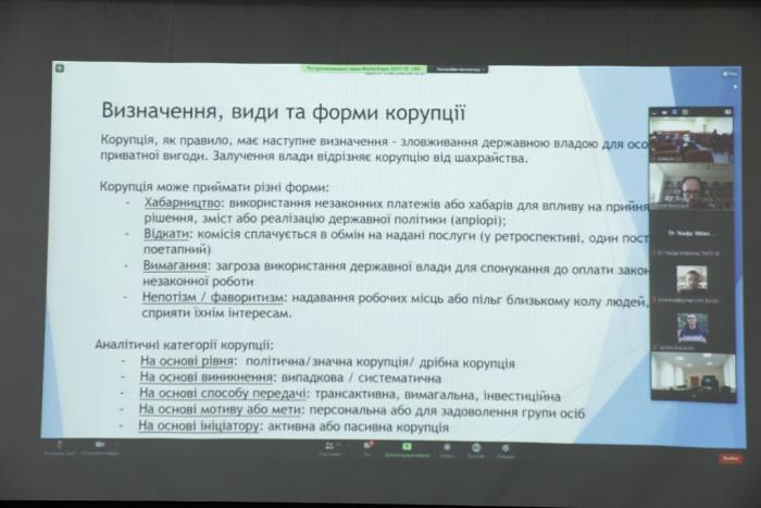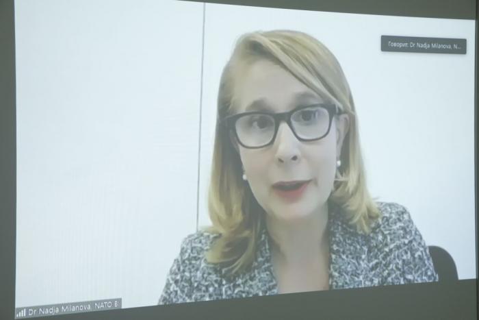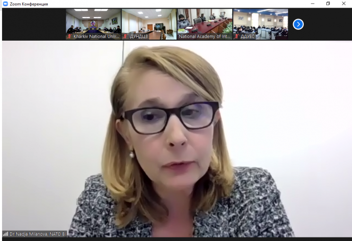 Керівник Програми НАТО–Україна з виховання доброчесності, штаб-квартира НАТО, доктор Надя Міланова розкрила тему «Підхід НАТО до виховання доброчесності: концепція, еволюція, процес та наслідки». Під час лекції спікерка окреслила зміст поняття «доброчесність», головну мету виховання доброчесності, рівні доброчесності (політичний, організаційний, особистий), окреслила партнерський план дій НАТО з розвитку оборонних інституцій, засоби та методологію попередження корупції, ефективні стратегії запобігання корупції та зниження корупційних ризиків у роботі оборонних і безпекових інституцій, ознайомила з нормами та стандартами боротьби з корупцією, ефективними стратегіями запобігання тощо. Наприкінці виступу доктор Надя Міланова надала практичні рекомендації щодо застосування сучасних правових механізмів зниження ризиків корупції.