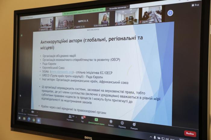 Старший помічник юриста Офісу з юридичних питань Агенції НАТО зі зв’язку та інформації Вінсан Рубер виступив з інформативною лекцією на тему «Міжнародні нормативно-правові акти, норми та стандарти з антикорупційної діяльності», під час якої надав визначення поняття «корупція», виокремив її основні форми та види. Зокрема, під час свого виступу, він зупинився на соціальних впливах корупції, особливостях та нещодавніх випадках корупції в сфері оборони, антикорупційних факторах (глобальних, регіональних та місцевих), політиці НАТО з виховання доброчесності, положеннях Конвенції ООН проти корупції та статусі її ратифікації різними країнами світу. Лекція викликала чималий інтерес серед учасників заходу. Вінсан Рубер вичерпно відповів на запитання учасників заходу щодо причин розвитку корупції, механізмів відстеження корупційних дій, найефективніших кроків боротьби з нею тощо.