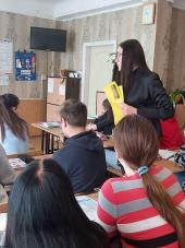 Анна Шевцова ознайомила юнаків і дівчат із формами навчання у виші, факультетами та спеціальностями, розповіла про переваги отримання вищої освіти у поліцейському закладі вищої освіти, про роботу наукових гуртків і спортивних секцій.