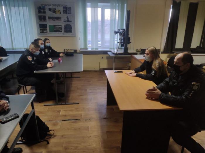 Під час бінарного заняття поліцейські поділилися з курсантами досвідом практичної роботи, звернувши увагу на важливість тактики спілкування з громадянами. Під час жвавої дискусії обговорили особливості режиму роботи поліцейських патрульної поліції. Наприкінці заняття курсанти мали змогу поставити запитання і отримали на них повні відповіді.