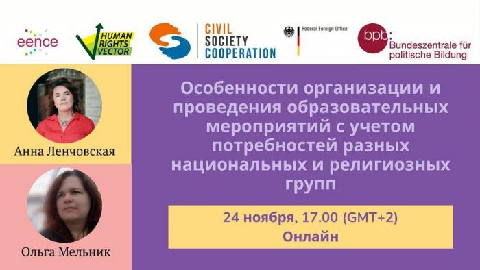 Онлайн-зустрічі були організовані громадською організацією «Вектор прав людини» (Україна) у межах проєкту «Заохочуючи різноманітність», який реалізується робочою групою Мережі EENCE «Громадянська освіта в роботі з групами, що зазнають дискримінації» за підтримки Федерального агентства з громадянської освіти (Bundeszentrale für politische Bildung / bpb) з допомогою коштів Федерального міністерства закордонних справ Німеччини.
