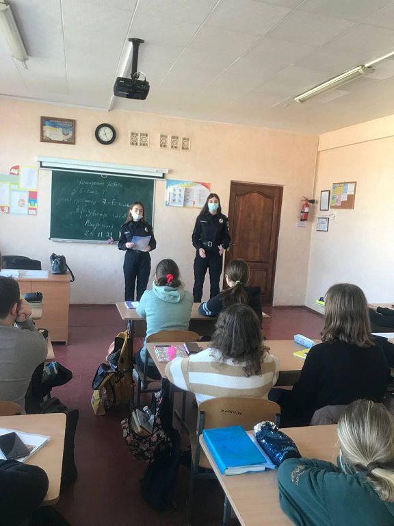 Цього тижня курсантки розповіли учням 7–9 класів Харківського ліцею № 107 про адміністративні та кримінальні наслідки порушень дисципліни підлітками. Вони поінформували підлітків про їх права та обов'язки, а також наголосили, що за всі правопорушення, вчинені дітьми, відповідальність несуть їх батьки.