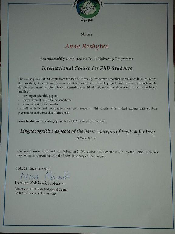У конференції, що відбулась у місті Лодзь (Польща), взяли участь молоді науковці з 12 країн Європи. Програма наукового заходу містила: лекції, воркшопи, аспірантські презентації дисертаційних робіт, індивідуальні консультації з провідними фахівцями. Анна Решитько успішно презентувала свою дисертацію та пройшла стажування з міждисциплінарного наукового співробітництва під керівництвом міжнародної групи експертів.