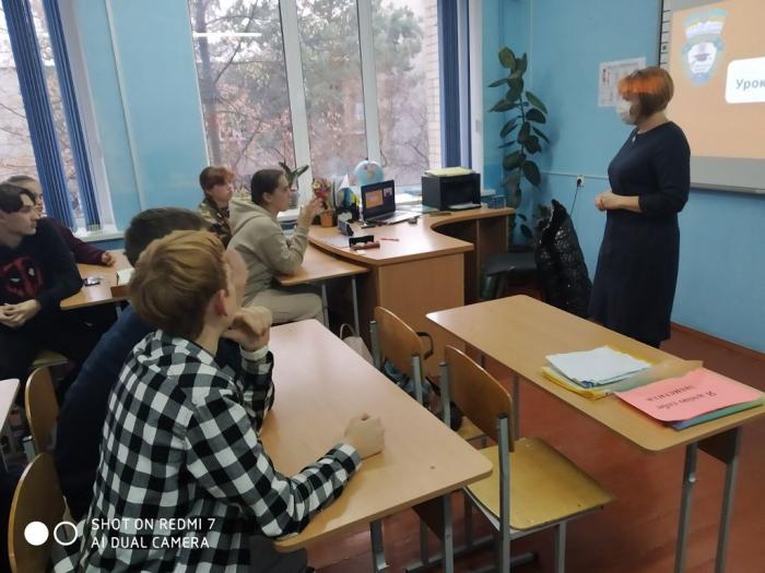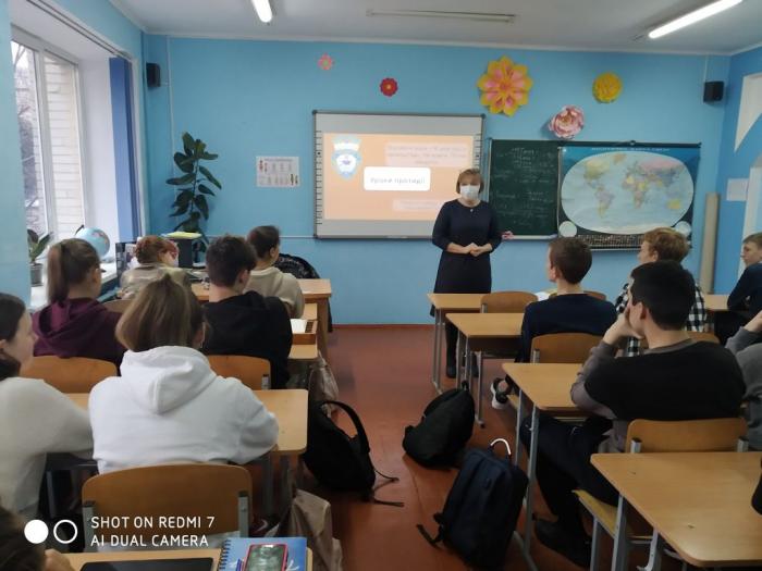 Професорка кафедри юридичних дисциплін Сумської філії ХНУВС Наталія Горобець провела профорієнтаційну зустріч із учнями 11-А класу Комунальної установи Сумської загальноосвітньої школи І-ІІІ ступенів № 23 та прочитала їм лекцію «Протидія домашньому насильству. Говори. Не мовчи».