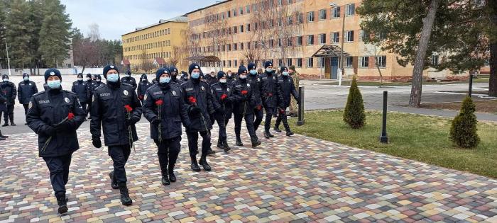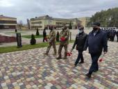Курсанти та студенти на Меморіалі Слави поклали квіти загиблим воїнам та вшанували пам’ять борців за незалежність хвилиною мовчання. З гостями частини зустрівся заступник командира бригади з морально-психологічного забезпечення підполковник Роман Єсін.