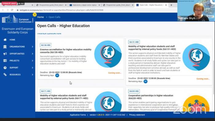 Представники Харківського національного університету внутрішніх справ долучилися до інформаційного вебінару щодо пріоритетів підготовки проєктів у сфері освіти та участі в конкурсах Програми ЄС Еразмус+, проведеного Представництвом ЄС в Україні спільно з Європейським виконавчим агентством з питань освіти і культури та Міністерством освіти і науки України. Метою проведення інформаційної сесії стала презентація конкурсних програм ЄС Еразмус+ 2022 р., проєктів академічної (кредитної) мобільності, віртуальних обмінів, спільних магістерських програм Еразмус Мундус. Спікерами заходу також було наголошено на розбудові потенціалу у сфері вищої освіти, професійно-технічної та фахової передвищої освіти, налагодженню співпраці у сфері шкільної освіти.