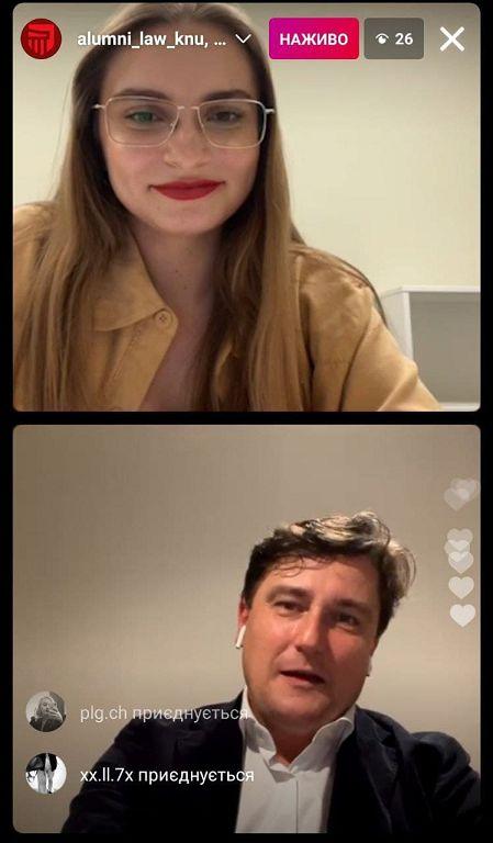 Учасниця Школи наукового лідерства факультету № 1 Харківського національного університету внутрішніх справ курсантка 3 курсу Юлія Пацьора взяла участь в онлайн-зустрічі зі швейцарським адвокатом Річардом Хлупом, що була організована Асоціацією випускників-юристів КНУ ім. Тараса Шевченка.