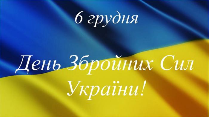 6 грудня 2021 року Збройні Сили України відзначають 30-ту річницю від дня свого створення. Це свято є символом справжньої мужності, героїзму і відваги. Ми низько вклоняємося подвигу тих, хто віддав своє життя за Україну, й усім, хто сьогодні несе військову службу в зоні АТО/ООС. Дякуємо нашим воїнам за відданість українській державі та незламну силу волі. Немає більш шляхетної місії, ніж захист свого народу, рідної землі.