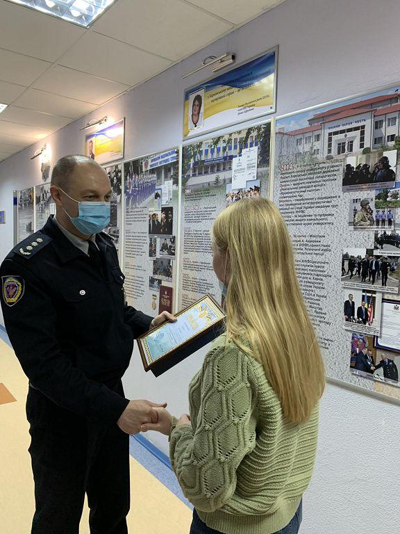 На кафедрі правового забезпечення підприємницької діяльності та фінансової безпеки факультету № 6 ХНУВС, що стала організатором Науково-творчого конкурсу з фінансової безпеки та фінансових розслідувань «Як викрити фінансового шахрая?», відбулося урочисте нагородження переможців та кращих учасників наукового змагання – випускників закладів середньої та фахової перед вищої освіти. У заході взяли участь ректор університету доктор юридичних наук, професор, генерал поліції третього рангу Валерій Сокуренко, декан факультету № 6 доктор юридичних наук, доцент Оксана Брусакова та завідувачка кафедри правового забезпечення підприємницької діяльності та фінансової безпеки факультету № 6 доктор юридичних наук, професор Ольга Гетманець.