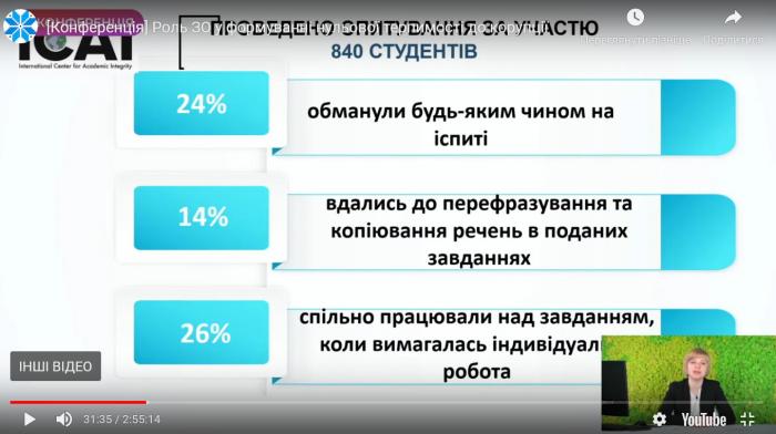Спікерами виступили: фахівчиня у сфері Інтелектуальної власності, експерт з питань академічної доброчесності Анна Гуржій; експертка з питань правоохоронної та антикорупційної діяльності, авторка понад 70 навчально-наукових публікацій Ольга Косиця; доцентка кафедри методики навчання суспільних дисциплін та гендерної освіти історико-філософського факультету Національного педагогічного університету імені М. П. Драгоманова Тамара Бакка; адміністративний директор Міждисциплінарного науково-освітнього центру протидії корупції Національного університету «Києво-Могилянська академія» Андрій Білецький.