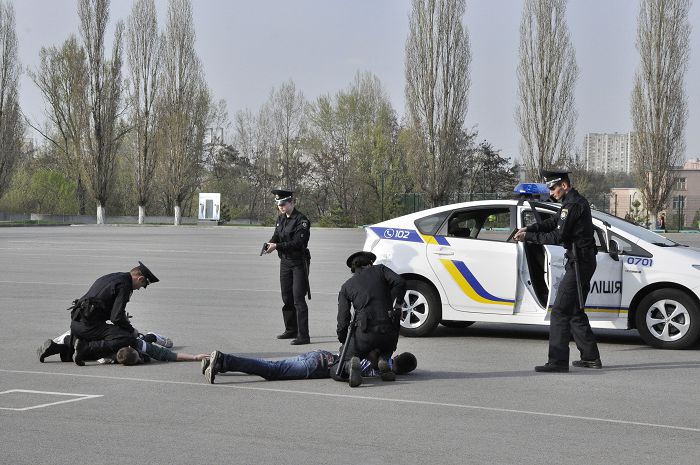 Для гостей відбулися показові виступи працівників і курсантів університету на плацу, під час яких вони продемонстрували виконання вправ тактичної акробатики, затримання злочинців за орієнтуванням під час перевірки документів, блокування транспортного засобу та затримання озброєних злочинців.