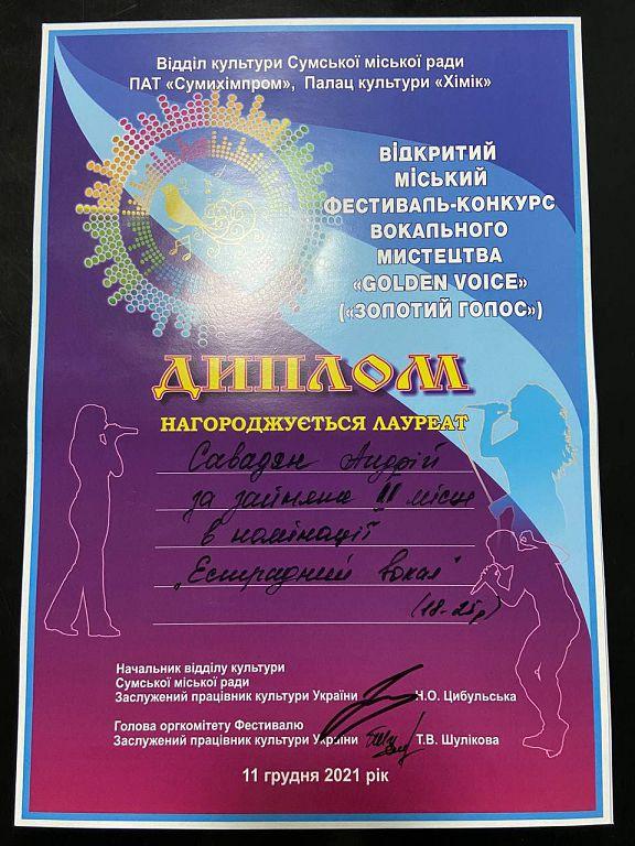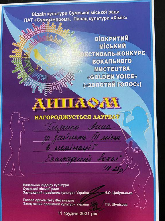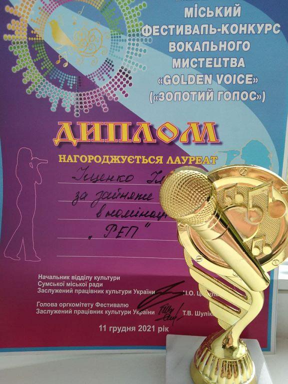 Курсанти Сумської філії Харківського національного університету внутрішніх справ взяли участь у відкритому міському фестивалі-конкурсі вокального мистецтва «Golden voice». Конкурс проводився у форматі онлайн та офлайн відділом культури Сумської міської ради у Палаці культури «Хімік» ПАТ «Сумихімпром». Серед багатьох учасників конкурсу курсанти філії здобули перемогу.