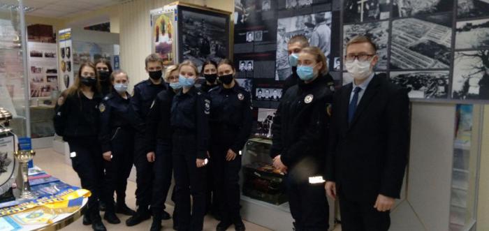 Перед ознайомленням з матеріалами виставки курсанти переглянули фрагмент документального фільму, відзнятого 2015 року за підтримки Міністерства внутрішніх справ та Української асоціації «Чорнобиль» органів та військ МВС України. Почуте з вуст свідків подій, надає розуміння подвигу, який здійснювали перші ліквідатори чорнобильського лиха.