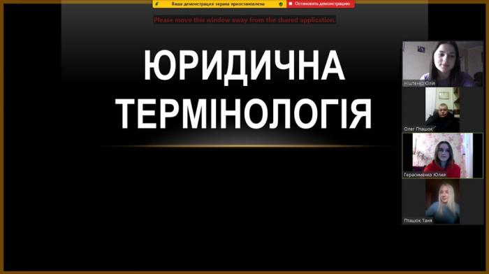 Відбулося онлайн засідання юридикотермінологічної секції студентсько-курсантського гуртка «Veritas» кафедри гуманітарних дисциплін Сумської філії ХНУВС під керівництвом завідувачки кафедри Валентини Василенко. На науковому зібранні було оголошено доповіді гуртківців, які розкрили питання когнітивних аспектів юридичних термінів, сучасних номенклатур елементів лінгвоюридичного коду, термінологічного забезпечення професійної діяльності правника, специфіки термінотворення специфічно фахових найменувань, ролі класичних мов у формуванні юридичної термінології, а також когнітивних аспектів вивчення деяких правничих термінів.
