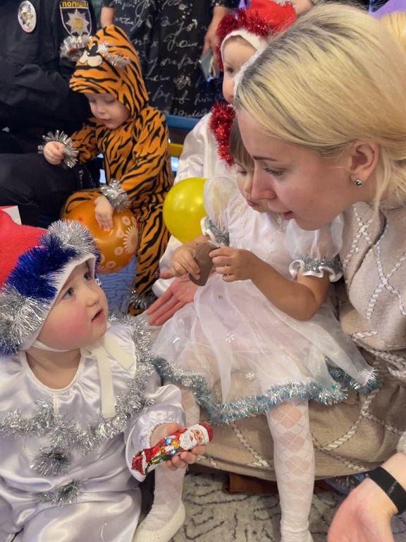 Представники Сумської філії: провідний фахівець Ганна Мітітєл, кураторка взводу СФ-204 Цвітана Баранова, голова студентсько-курсантського парламенту Марина Гайдар, її заступниця Аль Хататнех Месун Моаед та курсанти 2 курсу Дмитро Стародубець і Дмитро Конончук від імені великого колективу філії привітали маленьких дітлахів зі святом.