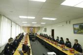 Дмитро Швець наголосив, що керівництво університету і ректор особисто тримають на контролі питання їх соціального захисту та підтримки, двері кабінетів завжди відчинені для спілкування й обговорення нагальних питань. Дмитро Швець та Анатолій Клочко привітали молодь з новорічними та різдвяними святами, побажали щастя, здоров’я, бути стійкими і впевненими в собі, добре вчитися та докладати усіх зусиль, щоб стати висококласними фахівцями, побудувати успішну кар’єру та реалізуватися у житті. Курсанти та студенти отримали подарунки та солодощі.