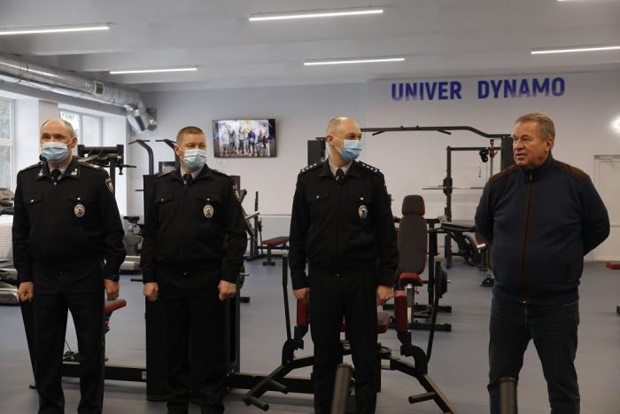 Декан факультету № 3 підполковник поліції Олександр Моргунов, який багато років поспіль очолював кафедру тактичної та спеціальної фізичної підготовки й доклав усіх зусиль для розвитку спорту у виші, подякував керівництву університету за постійну й потужну допомогу та підтримку щодо розвитку спортивної інфраструктури та спортсменів вишу, наголосивши, що такі умови для занять спортом та фізичного розвитку має далеко не кожний заклад вищої освіти України. Олександр Моргунов також ознайомив присутніх з оснащенням тренажерного залу, розрахованим для тренувань та підготовки спортсменів з різних видів спорту.
