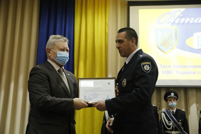 Присутній на урочистостях Міністр внутрішніх справ України у 2001–2003 рр. Юрій Смирнов у своєму виступі наголосив, що усіх присутніх у залі об’єднує багаторічна й віддана праця в ім’я держави і народу України. Він запропонував вшанувати хвилиною мовчання пам'ять усіх вчителів і наставників, яких сьогодні вже немає поруч, які ділилися своїм життєвим і професійним досвідом, давали мудрі настанови, виховуючи гідну зміну служителів закону і порядку.