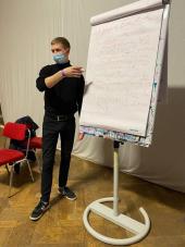 Микита Бєлєвцов також ознайомив учасників проєкту з історією та досягненнями Харківського національного університету внутрішніх справ, його структурою, умовами навчання, розповів про співпрацю з навчальними закладами іноземних країн, міжнародними організаціями. Поділився досвідом роботи у міжнародному центрі Школи наукового лідерства факультету № 1 ХНУВС, що діє за підтримки відділу міжнародного співробітництва університету, розповів про участь здобувачів освіти поліцейського вишу у програмах академічної мобільності тощо.
