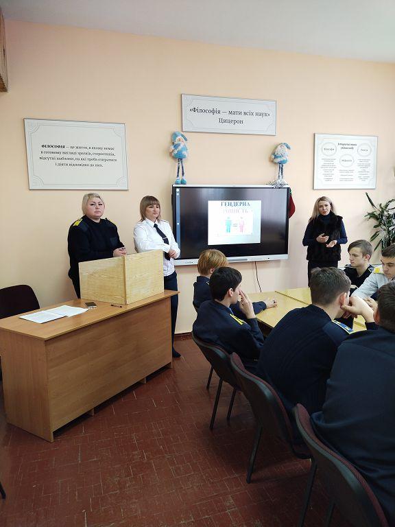 У Кременчуцькому льотному коледжі Харківського національного університету внутрішніх справ викладачі вищої категорії циклової комісії соціально-гуманітарних дисциплін та фізичної підготовки Марина Кірюхіна, Юлія Кошева та Ольга Хомяк провели круглий стіл на тему: «Гендерна рівність серед курсантів і студентів авіаційних та технічних вузів». У заході взяли участь здобувачі освіти коледжу – Ярослав Полуектов, Нікіта Кошевий, Ярослав Дивинський, Кирило Цимбалюк, Даніїл Решетило, Богдан Пузир, Данило Щелупанов, Дмитро Кусяка, Давид Бабенко.