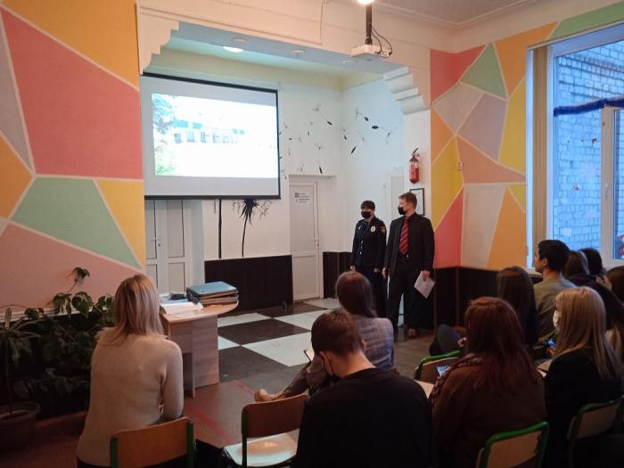 Представники університету розповіли майбутнім випускникам про перспективи, форми навчання, переваги отримання вищої освіти у Ознайомили старшокласників з умовами цьогорічної вступної компанії до Харківського національного університету внутрішніх справ, окреслили перспективи подальшого працевлаштування його випускників. Також представники університету розповили школярам про особливості підготовки бакалаврів та магістрів, про роботу підготовчих курсів, військової кафедри, про умови проживання у гуртожитку, можливості ресурсів університетської бібліотеки, про наукові гуртки та спортивні секції, в яких під час навчання можна реалізувати свої творчі та спортивні здібності, продемонстрували роботу експерта-криміналіста та провели тренінг щодо правильної та безпечної поведінки в екстремальних умовах. Майбутні абітурієнти отримали інформативні матеріали про університет та вичерпні відповіді на запитання.