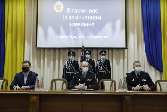 Дипломи вручили: перший проректор університету полковник поліції Дмитро Швець, проректори – полковник поліції Сергій Бортник, Михайло Бурдін, декан факультету № 3 підполковник поліції Олександр Моргунов, заступник декана факультету № 1 Владислав Невядовський.