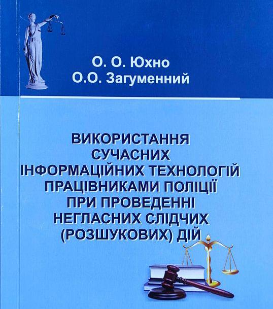 До наукової бібліотеки Харківського національного університету внутрішніх справ надійшло нове видання – Юхно О.О., Загуменний О.О. Використання сучасних інформаційних технологій працівниками поліції при проведенні негласних слідчих (розшукових) дій: навч. посіб. Харків: Фарт, 2021. 172 с. Видання третє. Доповнене і перероблене. (Серія «Бібліотека слідчого і детектива»: проблеми кримінального процесу»).