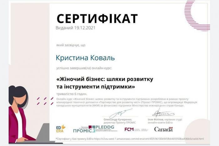 Учасниця Школи наукового лідерства Харківського національного університету внутрішніх справ курсантка 2 курсу факультету № 1 Кристина Коваль пройшла курси «Гендерно орієнтоване врядування» та «Жіноче лідерство та політична участь жінок» на освітній платформі EdEra, отримавши відповідний сертифікат.