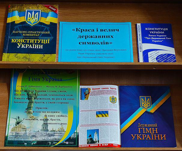 З метою відзначення цієї важливої події, наукова бібліотека Харківського національного університету внутрішніх справ пропонує до перегляду книжкову ілюстративну експозицію «Краса і велич державних символів».