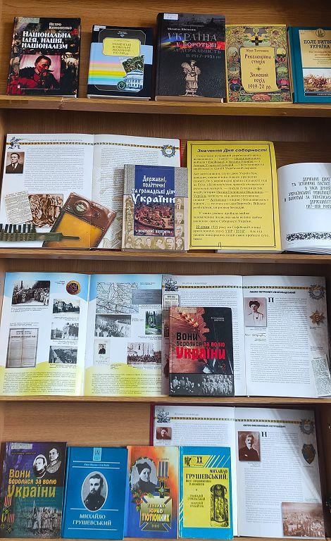 В експозиції представлені видання, що розкривають ідею єдності держави, яка була однією з найзаповітніших мрій українців протягом багатьох сторіч.