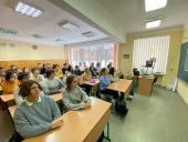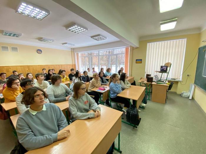 Представниці факультету провели бесіду на тему «Вступ на навчання до ХНУВС» та ознайомили молодь зі спеціальностями, умовами навчання, матеріально-технічною базою університету, правилами прийому, організацією побуту та дозвілля студентів. У заході взяли участь учні 10-х класів разом із класним керівником Вадимом Гряником.