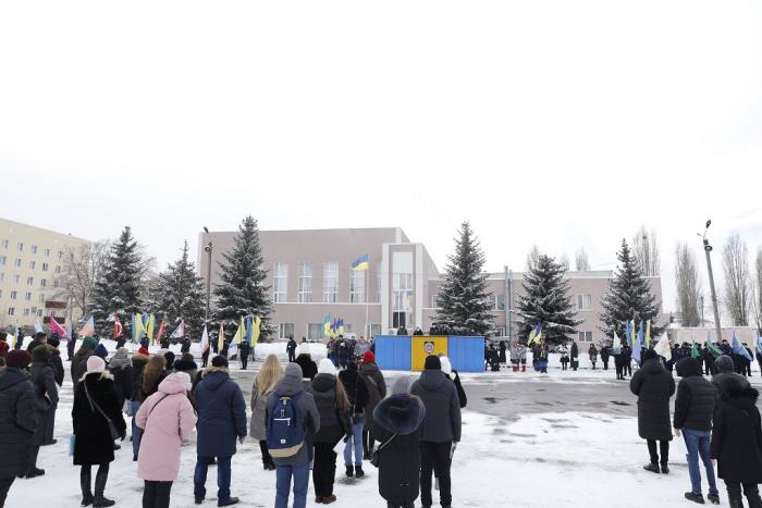 Присутні вшанували хвилиною мовчання пам'ять захисників, які віддали свої життя за вільну, незалежну, соборну Україну, та поклали квіти до пам’ятника героям.