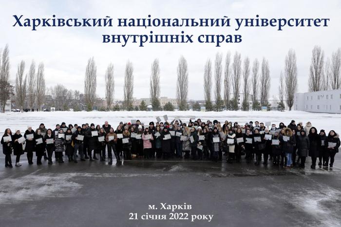 Відбулися урочисті заходи з нагоди Дня Соборності України та випуску слухачів магістратури факультету № 6. На великому плацу університету зібралися керівний склад вишу на чолі з ректором доктором юридичних наук, професором, генералом поліції третього рангу Валерієм Сокуренком, працівники, курсанти, студенти, випускники магістратури, їх батьки та рідні.
