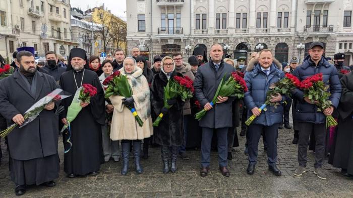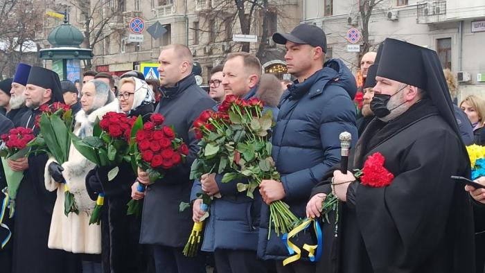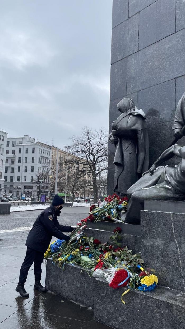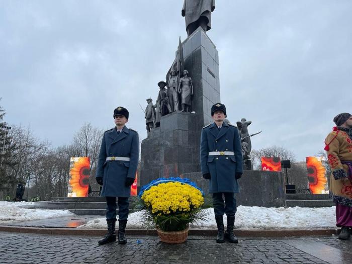 Представники органів державної влади та місцевого самоврядування, силових структур, духовенства, громадських організацій, ветерани АТО/ООС, курсанти та студенти, харків'яни поклали квіти до пам’ятника Тарасу Шевченку та вшанували хвилиною мовчання пам’ять тих, хто загинув у боротьбі за соборність і єдність України.