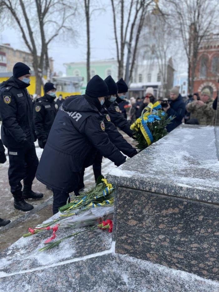 З нагоди знаменної для країни дати працівники, курсанти Сумської філії Харківського національного університету внутрішніх справ поклали квіти до пам’ятного знаку захисникам України. Присутні вшанували загиблих воїнів АТО/ООС, які віддали життя за мир, цілісність і незалежність нашої держави. Також цього дня відбулося покладання квітів і до пам’ятника Великого Кобзаря, борця за свободу України Т. Г. Шевченка.