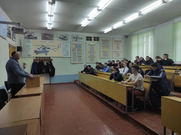 У Кременчуцькому льотному коледжі ХНУВС фахівець відділення організаційної роботи з перемінним складом відділу соціально-гуманітарної, виховної та профорієнтаційної роботи Анатолій Пальчик провів у рамках національно-патріотичного виховання урок-лекцію для курсантів 1-4-х курсів за темами: «Крути – символ героїзму українського юнацтва» та «Проголошення 4-ого Універсалу центральної ради й утворення УНР 22 січня 1918 року».