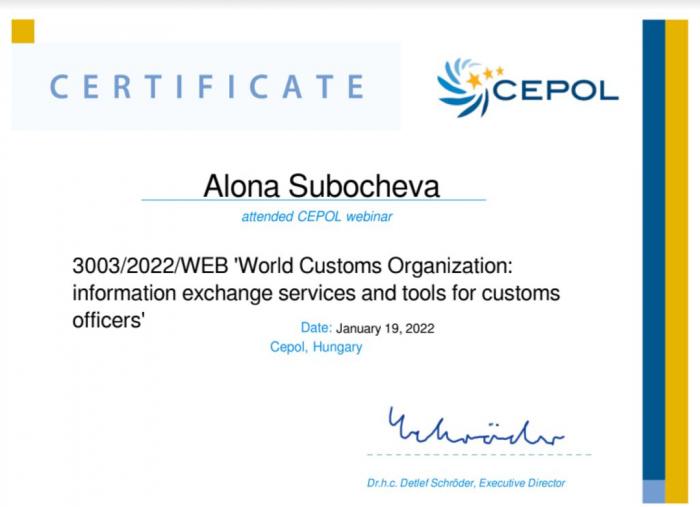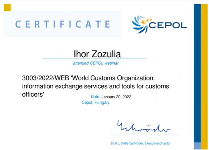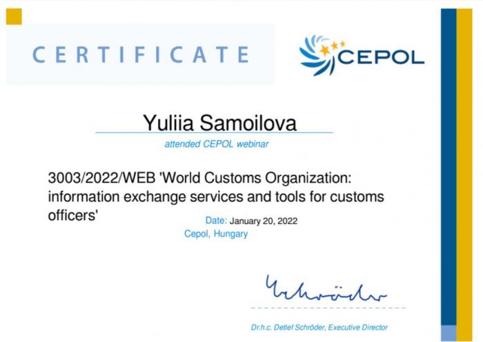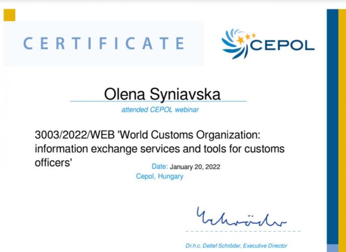 Представники Харківського національного університету внутрішніх справ прослухали вебінар «World Customs Organization: information exchange services and tools for customs officers» на освітній онлайн-платформі LEEd CEPOL.