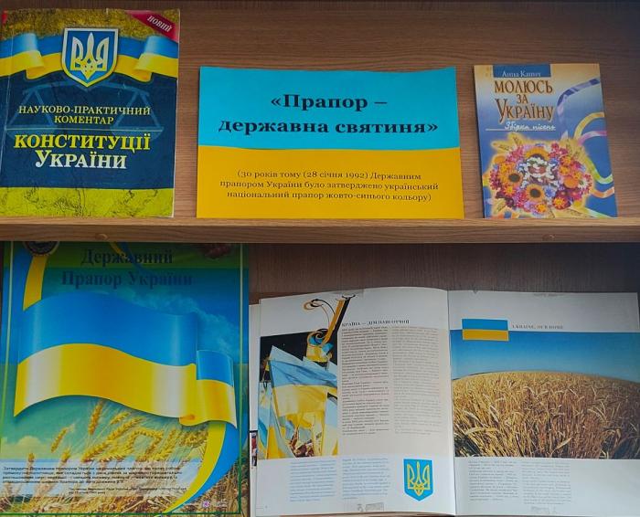 28 січня 1992 року Верховна Рада України прийняла постанову «Про Державний прапор України». З нагоди цієї події наукова бібліотека Харківського національного університету внутрішніх справ пропонує до перегляду книжково-ілюстративну експозицію «Прапор - державна святиня».
