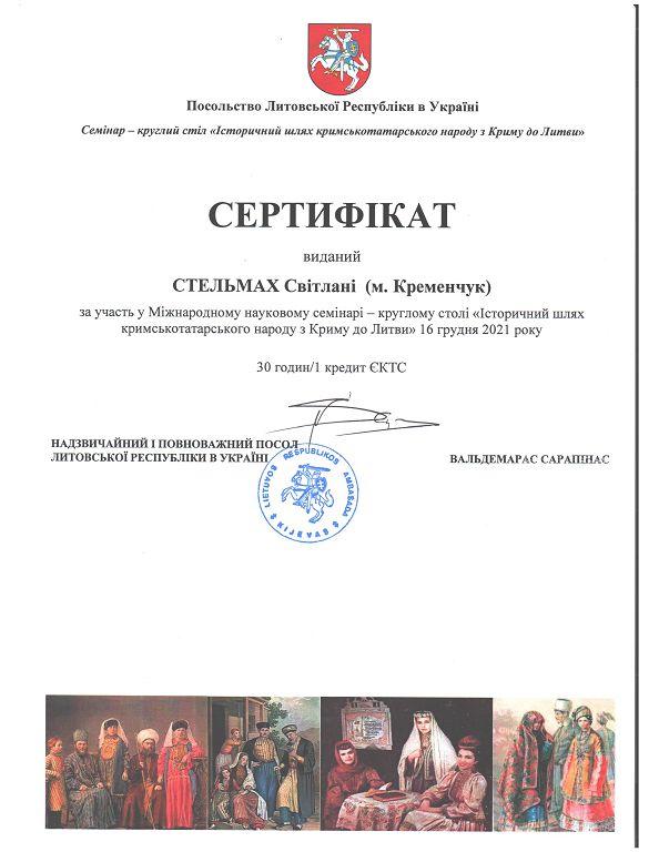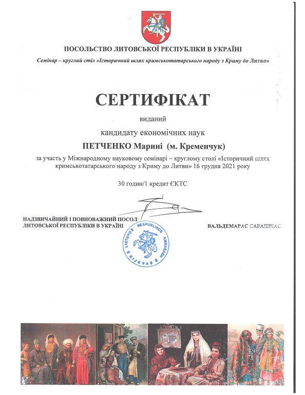 Представниці Кременчуцького льотного коледжу Харківського національного університету внутрішніх справ – відповідальна з гендерних питань Марина Петченко, начальниця відділу міжнародних відносин та міжвузівської роботи Ірина Гладирь, наукова співробітниця відділу організації наукової роботи та гендерних питань Ольга Глазунова, фахівчиня відділу міжнародних відносин та міжвузівської роботи Світлана Стельмах взяли участь у Міжнародному науковому семінарі-круглому столі «Історичний шлях кримськотатарського народу з Криму до Литви», що проводився в Міжнародному інформаційно-контактному центрі імені князя Вітовта Інституту розвитку Кременчука. Модератором заходу виступив заступник директора Інституту розвитку Кременчука Андрій Мельник.