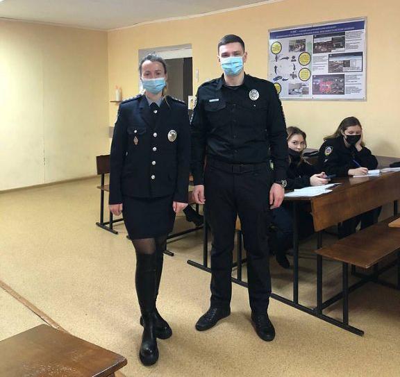 Старший викладач кафедри поліцейської діяльності та публічного адміністрування факультету № 3 Марина Крєпакова і викладач кафедри адміністративно-правових дисциплін факультету № 2 Донецького державного університету внутрішніх справ старший лейтенант поліції Іван Хозлу провели бінарні заняття з дисциплін «Адміністративно-юрисдикційна діяльність поліції» та «Порядок складання адміністративних матеріалів за порушення правил дорожнього руху» для курсантів факультету № 3.