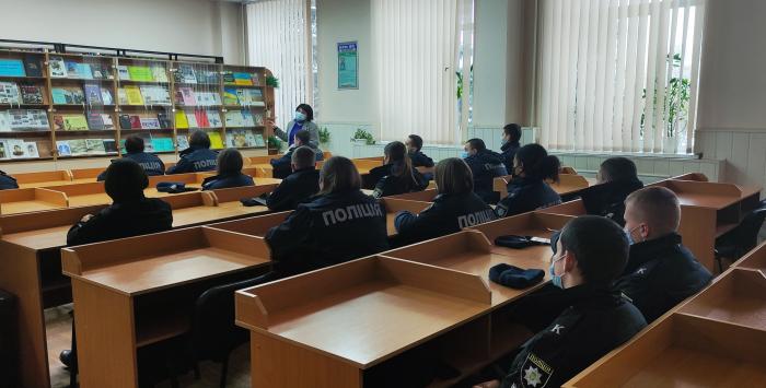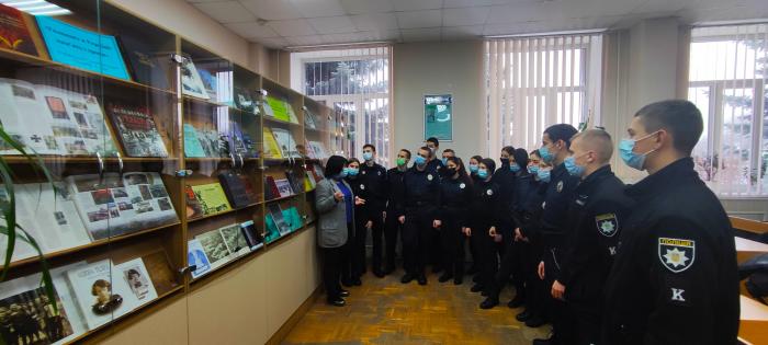Наприкінці зустрічі курсанти ознайомилися з книжково-ілюстративною експозицією «Крути – невгасимий вогонь української волі».