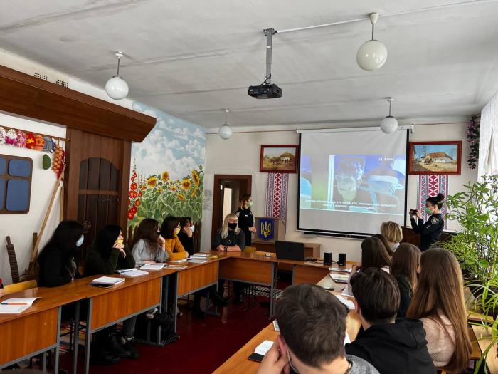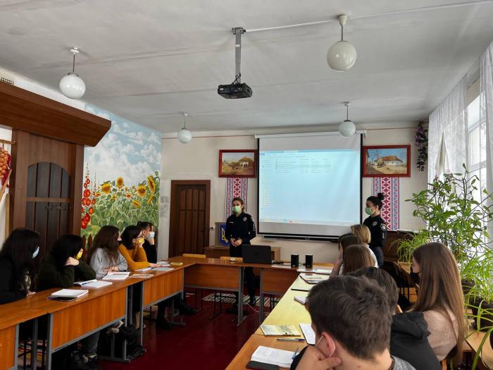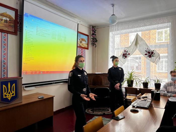 Для здобувачів першого курсу завідувачка кафедри гуманітарних дисциплін Валентина Василенко разом зі старшим інспектором сектору зв’язків із громадськістю управління патрульної поліції в Сумській області капітаном поліції Оксаною Красовською та інспектором сектору зв’язків із громадськістю управління патрульної поліції в Сумській області старшим лейтенантом поліції Мариною Горьковською провели бінарне заняття «Мовленнєва культура правника при професійній комунікативній взаємодії».