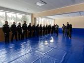 Цікаво було спостерігати як тендітна дівчина виконує захисні прийоми від ударів руками та переходить до затримання уявного правопорушника. Як пояснила Олена Гудим, жінкам-поліцейським нерідко доводиться застосовувати заходи фізичного впливу та спеціальні засоби, тому ними необхідно оволодіти ще під час навчання та удосконалювати протягом всієї служби. Також вона наголосила на тому, що будь яке застосування заходів примусу повинно бути законним, необхідним, пропорційним та ефективним, як того вимагає закон України «Про Національну поліцію України».