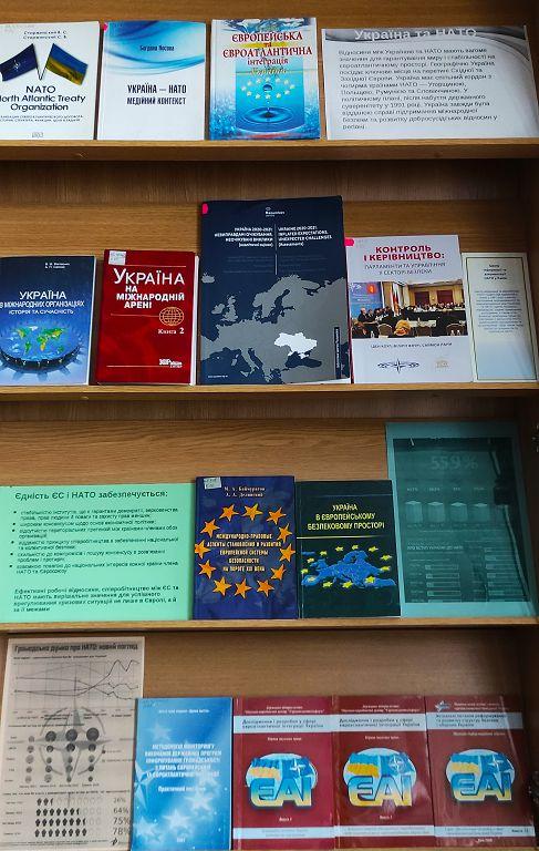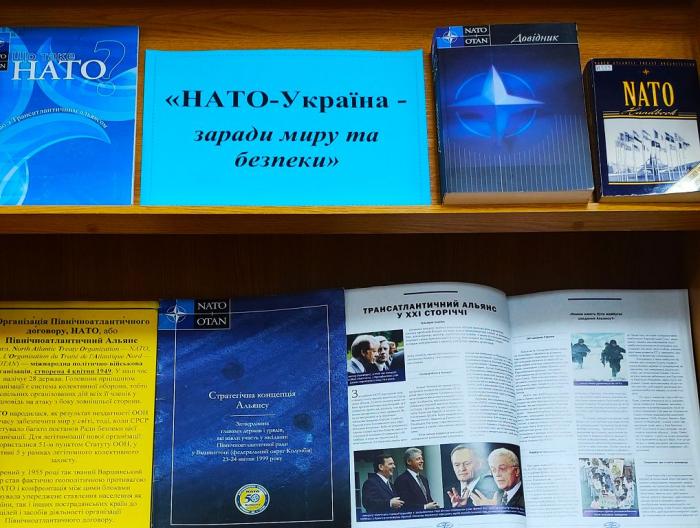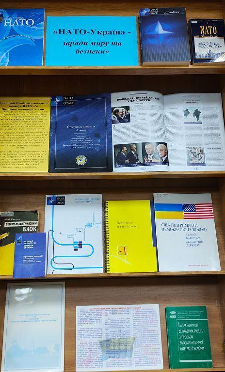 Наукова бібліотека Харківського національного університету внутрішніх справ підготувала книжково-ілюстративну експозицію «Нато –Україна – заради миру і безпеки».