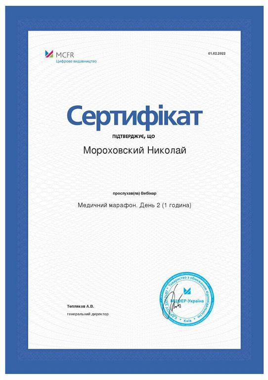 Учасник Школи наукового лідерства ХНУВС курсант 2 курсу факультету № 1 Микола Мороховський взяв участь у Медичному марафоні. Під час онлайн-заходу розглядалися актуальні теми, присвячені лікарській таємниці, взаємодії медичних закладів з поліцією та ін. Спеціалісти, які мають значний практичний досвід роботи у сфері охорони здоров'я, поділилися власними кейсами, ситуаціями, з якими вони зустрічалися на практиці, супроводжуючи свої виступи презентаціями та влучно наведеними прикладами. Як зазначає курсант, такий вебінар є корисним не лише для лікарів, але й для представників інших професій, зокрема, – Національної поліції, адже серед інших питань було розглянуто й основні положення наказу «Про затвердження порядку взаємодії між органами та підрозділами Національної поліції, закладами охорони здоров’я та органами прокуратури України при встановленні факту смерті людини» та інші важливі для майбутніх слідчих нормативно-правові акти.